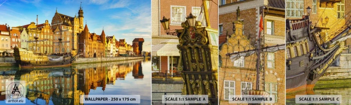 Échantillon de Papier Peint Premium Canvas - Reflet dans le miroir du passé - Ville, Gdańsk, Architecture - 100x30 cm