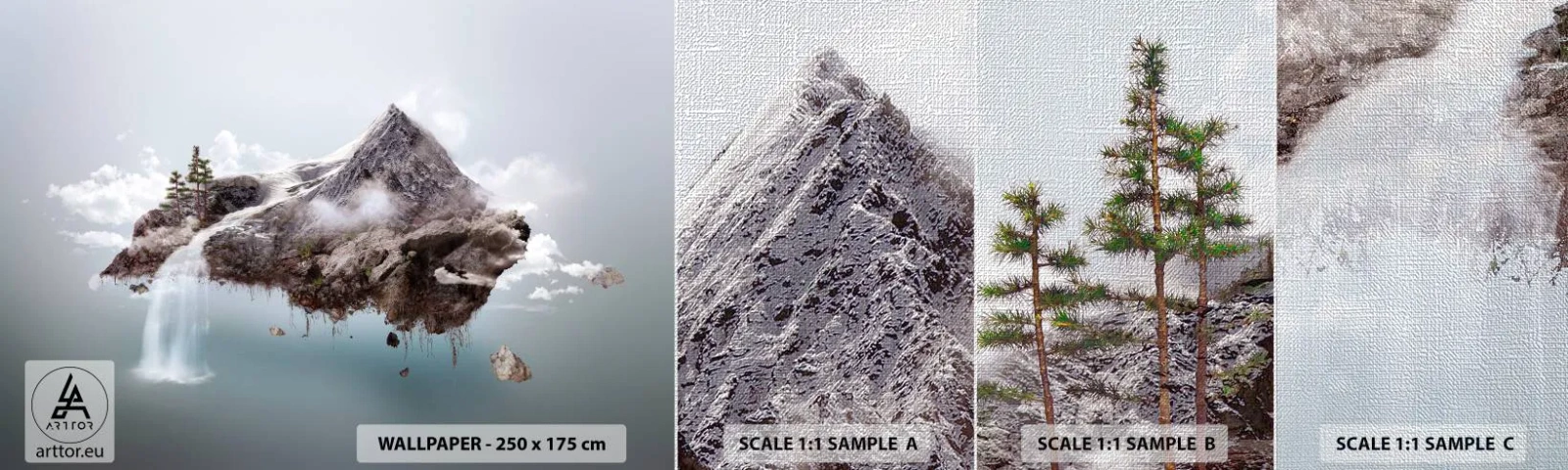 Échantillon de Papier Peint Premium Canvas - L'oeil du surréaliste - Abstraction, Fantaisie, Île - 100x30 cm