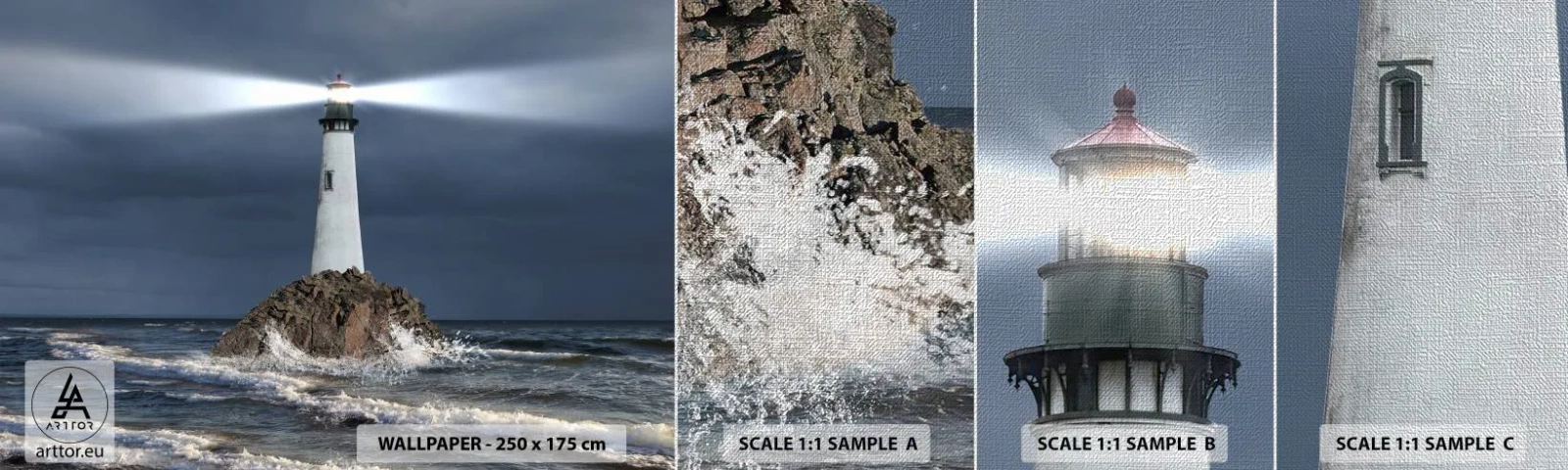 Échantillon de Papier Peint Premium Canvas - I… i… ici ! - Paysage, Phare, Île - 100x30 cm