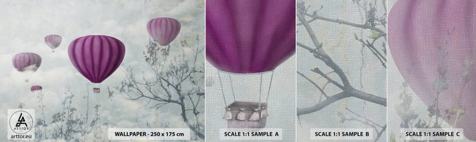 Échantillon de Papier Peint Premium Canvas - Comme des navires dans le ciel - Abstraction, Vol en montgolfière, Graphique - 100x30 cm