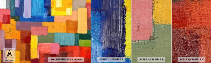 Échantillon de Papier Peint Premium Canvas - Chacun est différent, tout est coloré - Abstraction, Morceau, Modèle moderne - 100x30 cm