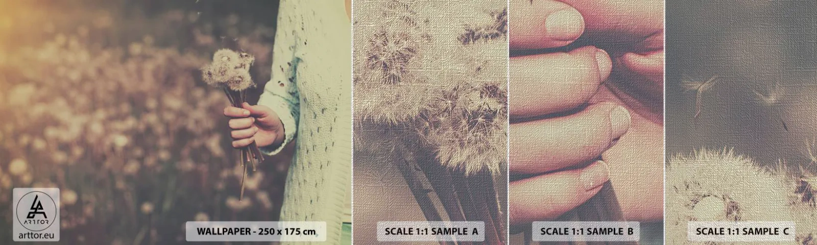 Échantillon de Papier Peint Premium Canvas - Merci de les garder - Pissenlit, Prairie, Nature - 100x30 cm