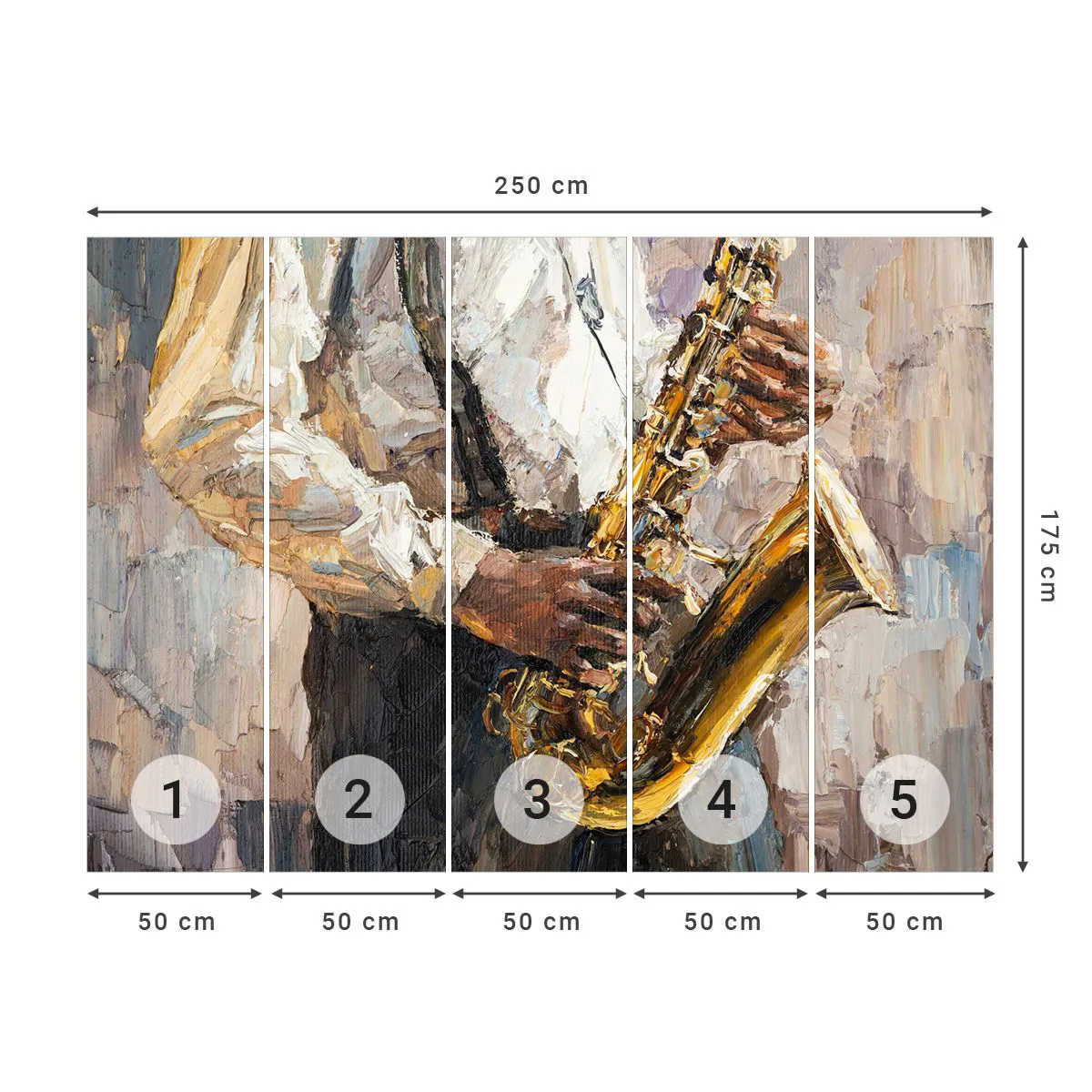 Papier Peint Photo Premium Canvas - C'est l'heure du solo - Saxophone, Musique, Peinture - 250x175 cm