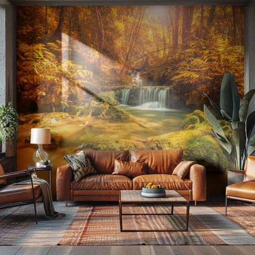 Papier Peint Autocollant Deluxe Sticker - Cascade de forêt en or - Paysage, Cascade, Thaïlande - 200x140 cm