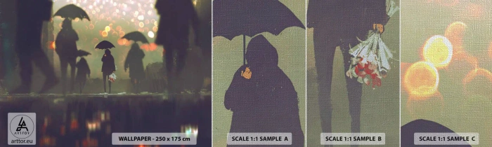 Échantillon de Papier Peint Premium Canvas - Du point de vue d'une goutte de pluie - Marcher sous la pluie, Personnes, Graphique - 100x30 cm