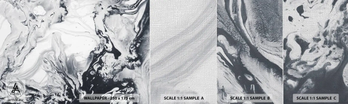 Échantillon de Papier Peint Premium Canvas - Au centre de la Terre - Abstraction, Morceau, Noir et blanc - 100x30 cm