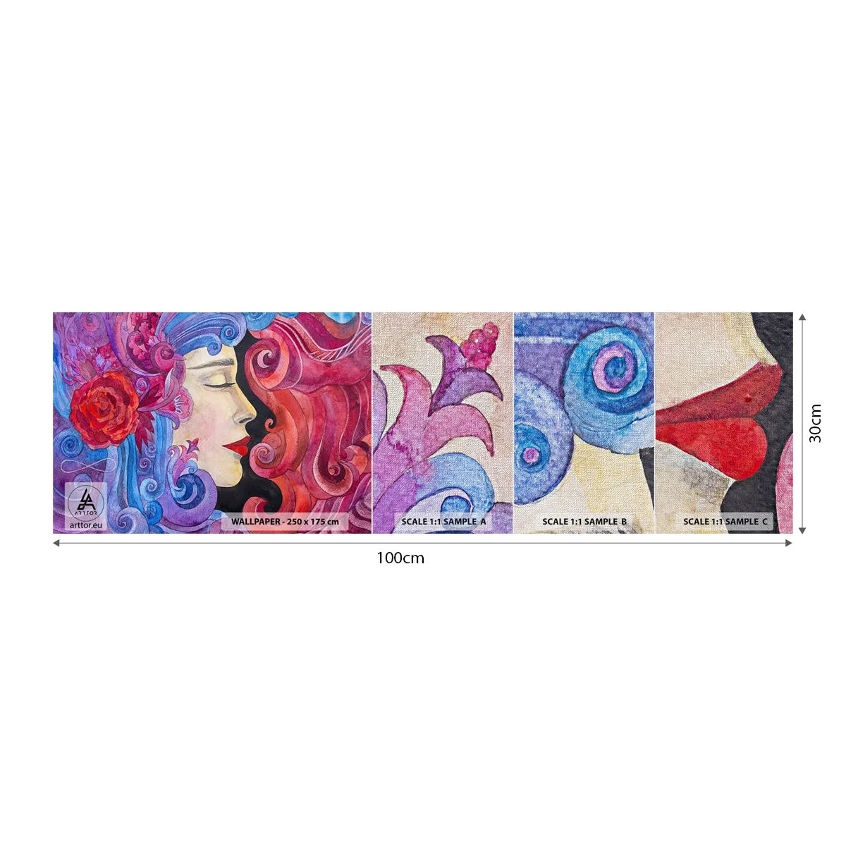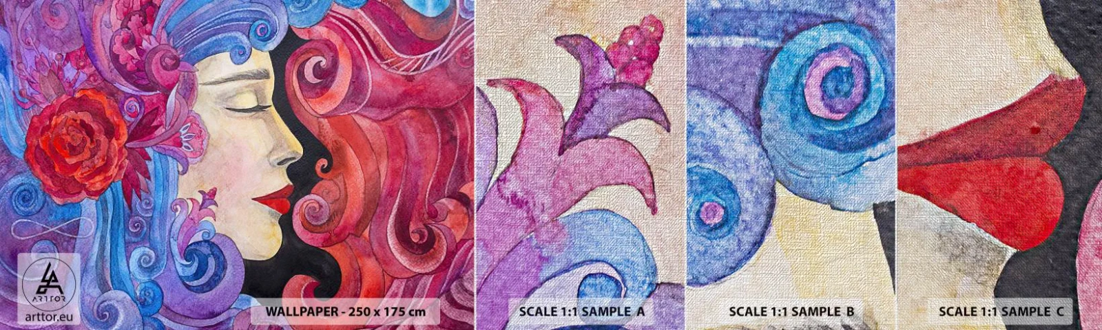 Échantillon de Papier Peint Premium Canvas - L'Art Nouveau est toujours vivant - Femme, Fleurs, Déesse - 100x30 cm