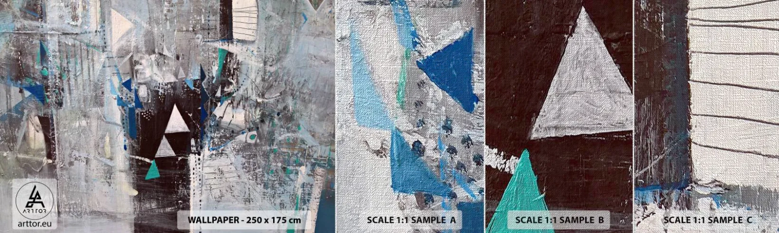 Échantillon de Papier Peint Premium Canvas - Ordre prioritaire des triangles - Abstraction, Morceau, Modèle moderne - 100x30 cm