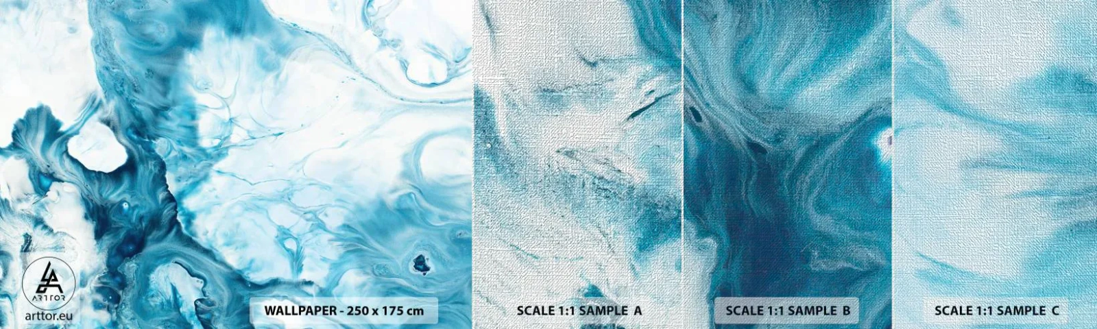 Échantillon de Papier Peint Premium Canvas - Concert de bleu - Abstraction, Morceau, Art moderne - 100x30 cm