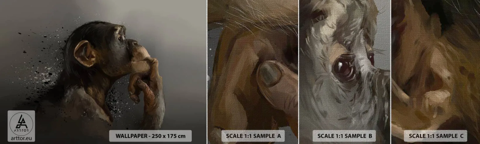 Échantillon de Papier Peint Premium Canvas - Certainement un penseur - Animaux, Singe, Morceau - 100x30 cm