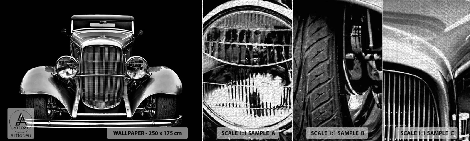 • Rétro, Voiture, Classique, Noir et blanc, Automobile, Vintage et rétro, Pour le bureau, Pour le bureau, Pour la salle à manger, Pour le hall, Pour le salon, Pour la chambre, Noir, Gris, Noir et blanc