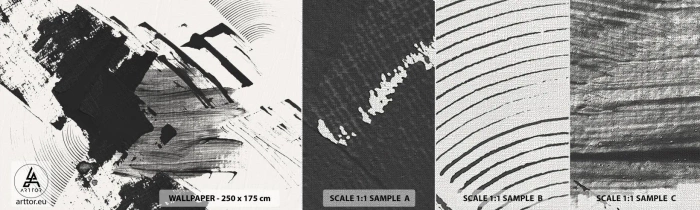 Échantillon de Papier Peint Premium Canvas - Abstraction – expression du noir - Morceau, Moderne, Noir et blanc - 100x30 cm
