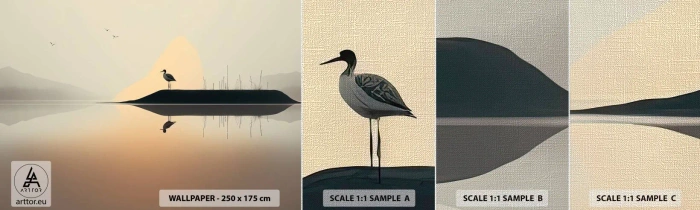 Échantillon de Papier Peint Premium Canvas - Le seigneur du lac - Oiseau, Paysage, Minimalisme - 100x30 cm