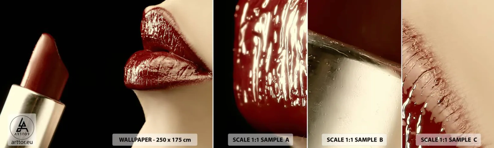 Échantillon de Papier Peint Autocollant Deluxe Sticker - Sensualité et brillance du carmin - Personnes, Femme, Se maquiller - 100x30 cm