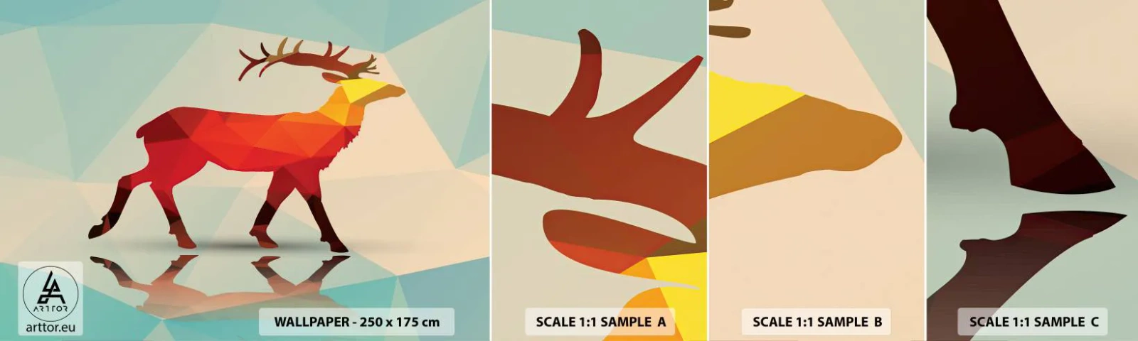 Échantillon de Papier Peint Autocollant Deluxe Sticker - Cerf géométrique - Animaux, Cerf, Figure géométrique - 100x30 cm
