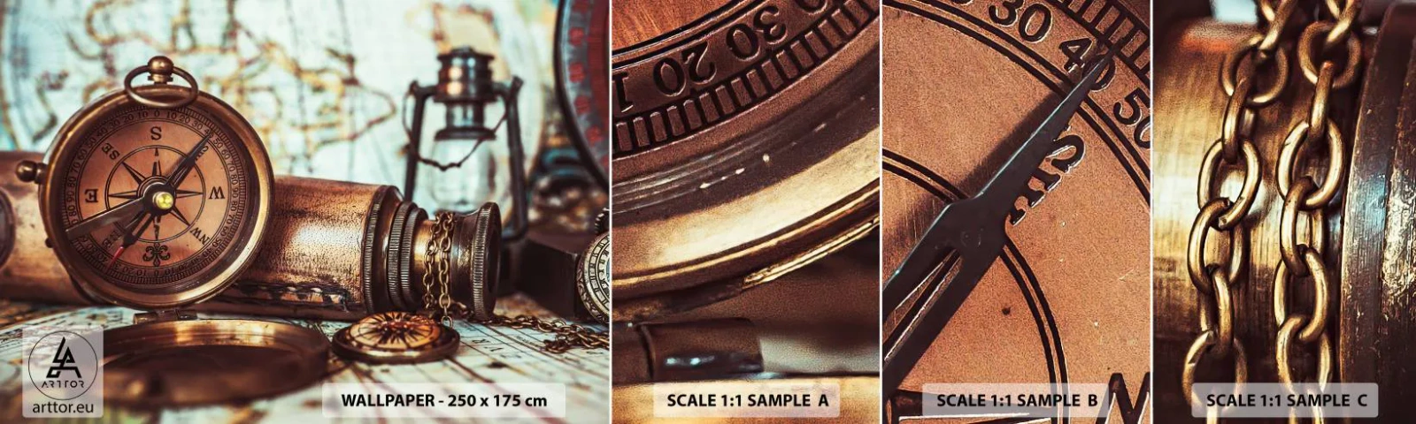 Échantillon de Papier Peint Autocollant Deluxe Sticker - Une aventure de pirates dans les Caraïbes vous attend - Nautique, Pirates, Boussole - 100x30 cm