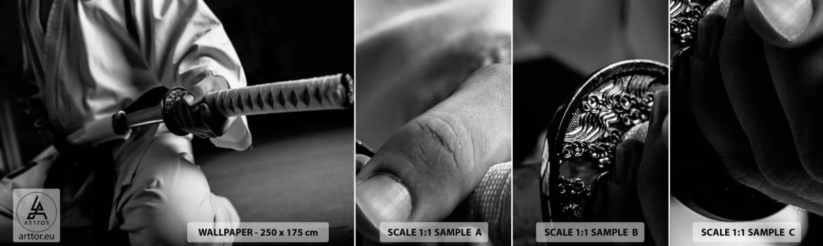 Échantillon de Papier Peint Autocollant Deluxe Sticker - Âme de guerrier - épée de samouraï, Japon, Arts martiaux - 100x30 cm