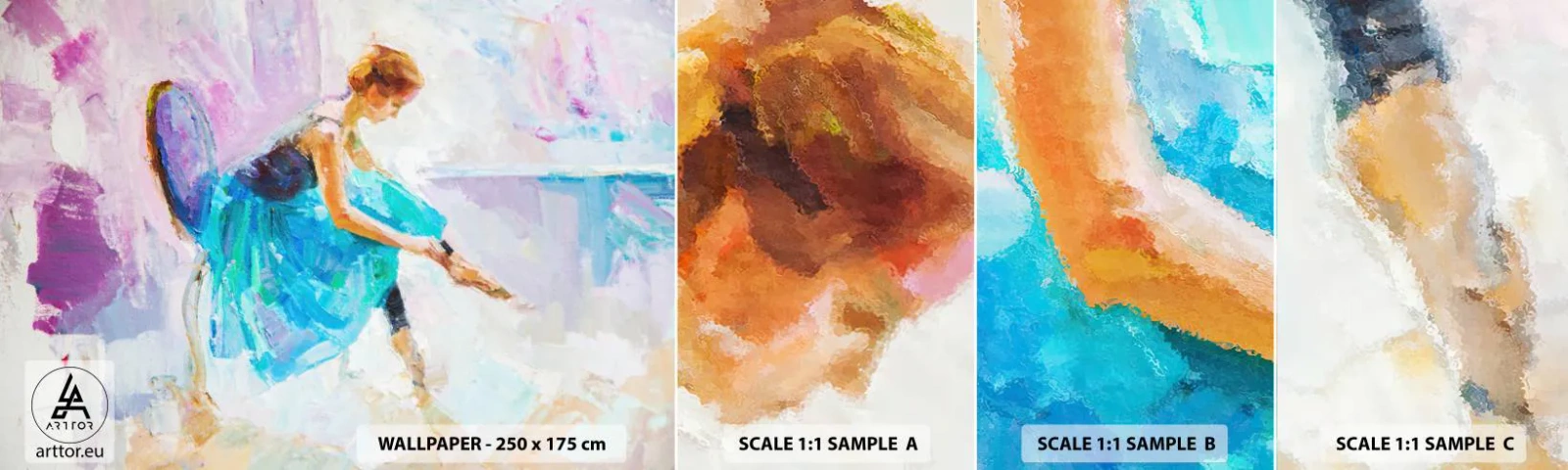 Échantillon de Papier Peint Autocollant Deluxe Sticker - Grâce ineffable, charme subtil - Ballerine, Danse, Ballet - 100x30 cm