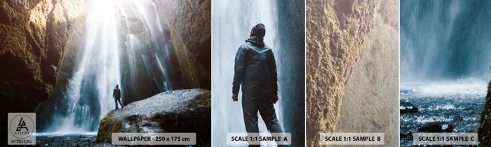 Échantillon de Papier Peint Autocollant Deluxe Sticker - Restauration des proportions - Cascade, Rochers, Grotte - 100x30 cm