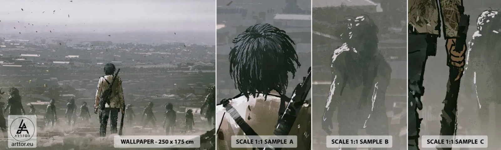 Échantillon de Papier Peint Autocollant Deluxe Sticker - Dernier samaritain ? - Abstraction, Fantaisie, Armée - 100x30 cm