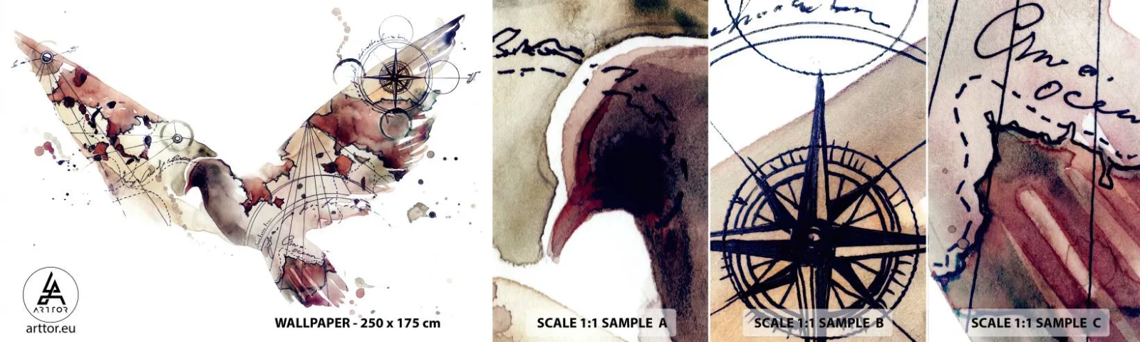 Échantillon de Papier Peint Autocollant Deluxe Sticker - Un pèlerin volant - Des oiseaux, Pigeon, Abstraction - 100x30 cm