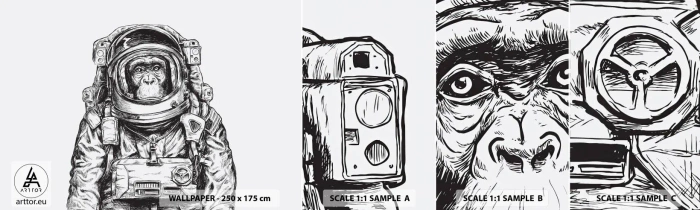 Échantillon de Papier Peint Autocollant Deluxe Sticker - Évolution alternative - Abstraction, Astronaute, Singe - 100x30 cm