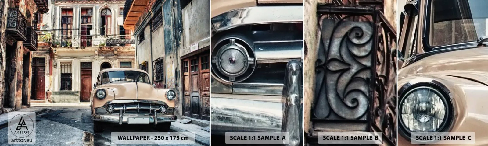 Échantillon de Papier Peint Autocollant Deluxe Sticker - Sieste à La Havane - Voiture ancienne, Architecture, Ville - 100x30 cm