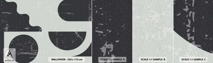 Échantillon de Papier Peint Autocollant Deluxe Sticker - Composition dessus et dessous - Abstraction, Noir et blanc, Vieilli - 100x30 cm