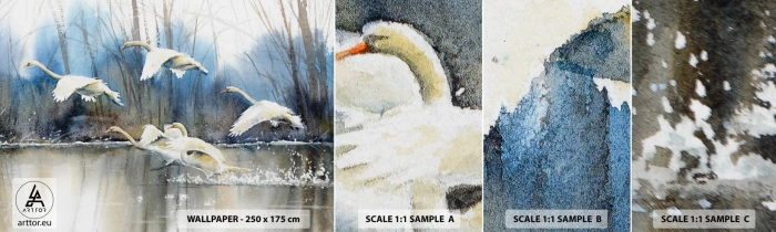 Échantillon de Papier Peint Autocollant Deluxe Sticker - Comme dans un conte de fées sur les cygnes sauvages - Cygnes, Des oiseaux, Paysage - 100x30 cm