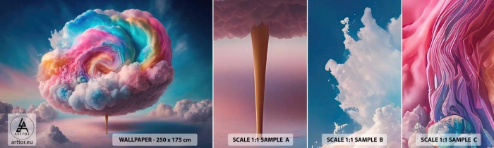 Échantillon de Papier Peint Autocollant Deluxe Sticker - Le rêve d'un parc d'attractions - Pastel, Des nuages, Sucré - 100x30 cm