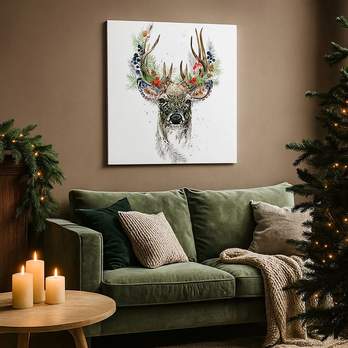 • Abstrait, Cerf, Renne, Animaux, Pour le bureau, Pour le bureau, Pour la salle à manger, Pour le hall, Pour le salon, Pour la chambre, Blanc gris, Carré