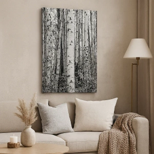 Impression sur toile - Image sur toile - Bouleaux noirs et blancs dans la forêt - 120x50cm - Enchevêtrement de bouleau - Décoration murale moderne pour le salon et la chambre ARTTOR