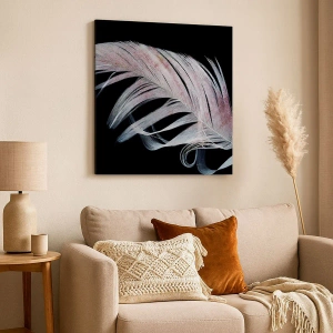 Think of Touch est une impression sur toile unique représentant une plume délicate sur un fond noir profond. La composition artistique souligne la légèreté et la subtilité du motif, conférant à l'ensemble un caractère moderne et minimaliste. Les tons noir et blanc, rehaussés de subtils accents de couleur dans la plume, apportent une harmonie raffinée et élégante.