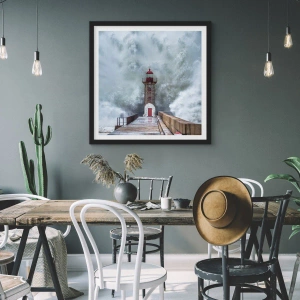 Les détails de l'affiche, tels que la texture de l'eau, l'intensité des vagues et la construction solide du phare, créent une composition incroyablement réaliste et émouvante. Le contraste entre la structure lumineuse du phare et la mer sombre et agitée souligne le caractère dramatique de la scène et ajoute une touche artistique. Voici un élément décoratif unique pour ceux qui apprécient la beauté et la puissance de la nature.