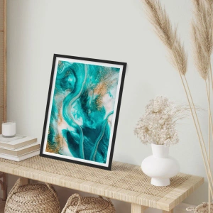 Affiche dans un cadre noir - Poster - Une composition abstraite dans des tons turquoise et or. - 50x70cm - Rivière d'or - Décoration murale moderne pour le salon et la chambre ARTTOR