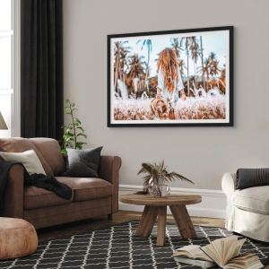 Le paysage peuplé de palmiers et d'herbes hautes évoque les voyages tropicaux et la liberté des vacances. Les tons beige, marron et blanc de l'affiche s'intègrent parfaitement aux intérieurs bohèmes et modernes. C'est une option idéale pour ceux qui souhaitent apporter chaleur et caractère naturel à leur intérieur.