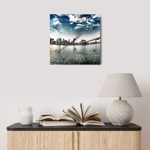 Horloge murale - Pendule murale - Panorama de la ville avec un pont contre le ciel bleu - 30x30cm - L'île de verre - Décoration murale moderne pour le salon et la chambre ARTTOR