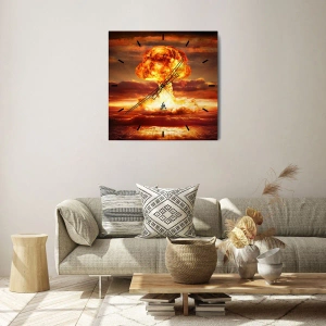 Horloge murale - Pendule murale - Une explosion dans des tons orange contre le ciel - 30x30cm - Et la fin viendra - Décoration murale moderne pour le salon, la cuisine et la chambre ARTTOR