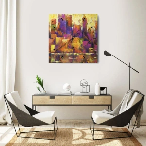 Horloge murale - Pendule murale - Composition abstraite d'une métropole dans les tons jaune et violet - 30x30cm - Composition métropolitaine - Décoration murale moderne pour le salon et la chambre ARTTOR