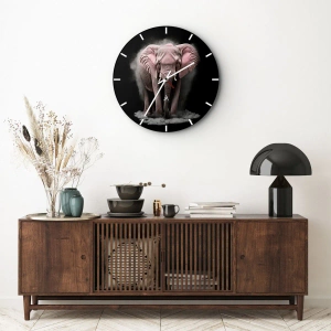 Horloge murale - Ne pensez pas à un éléphant rose ! - Un éléphant rose sur fond noir, entouré de brouillard