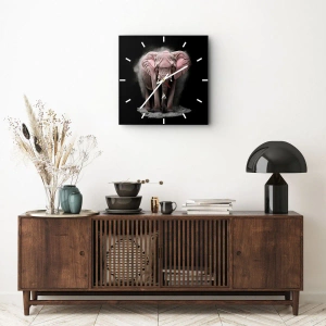 Horloge murale - Pendule murale - Un éléphant rose sur fond noir entouré de brouillard - 30x30cm - Ne pensez pas à un éléphant rose ! - Décoration murale moderne pour le salon, la cuisine et la chambre ARTTOR