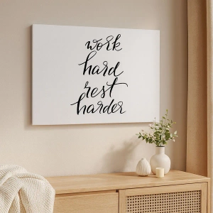 Impression sur toile - Image sur toile - Citation « Travaillez dur, reposez-vous plus dur » sur fond blanc - 50x70cm - Équilibre de vie - Décoration murale moderne pour le salon et la chambre ARTTOR
