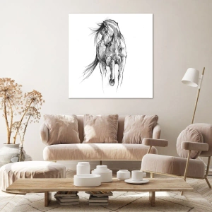 Impression sur toile - Image sur toile - Croquis en noir et blanc d'un cheval au galop - 80x120cm - D'un trot gracieux - Décoration murale moderne pour le salon et la chambre ARTTOR