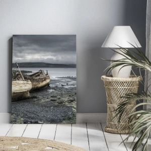 Impression sur toile - Image sur toile - Bateaux abandonnés sur le rivage dans une scène pluvieuse - 70x50cm - "En signe d'épreuves difficile" - Décoration murale moderne pour le salon et la chambre ARTTOR