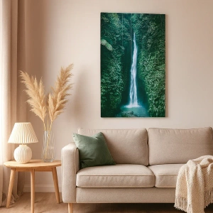 Impression sur toile - Image sur toile - Une cascade entourée d'une végétation tropicale dense - 50x70cm - Fontaine tropicale - Décoration murale moderne pour le salon et la chambre ARTTOR