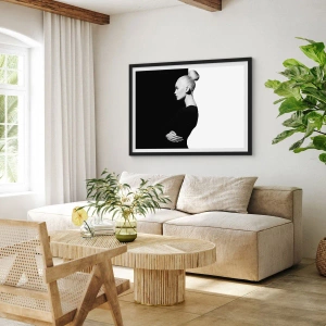 Affiche dans un cadre noir - Poster - Portrait élégant d'une femme sur fond noir et blanc - 70x50cm - Tout simplement une femme - Décoration murale moderne pour le salon et la chambre ARTTOR