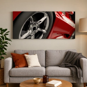 Impression sur toile - Image sur toile - Voiture de sport rouge avec jantes chromées - 120x50cm - Conçu pour la vitesse - Décoration murale moderne pour le salon et la chambre ARTTOR
