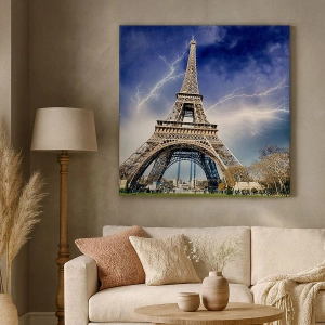 Le motif de la Tour Eiffel dans un décor orageux rappelle l'atmosphère unique de Paris, alliant élégance, dynamisme et puissance de la nature. C'est une image qui inspire l'action et la réflexion sur l'harmonie entre la création humaine et les forces de la nature.