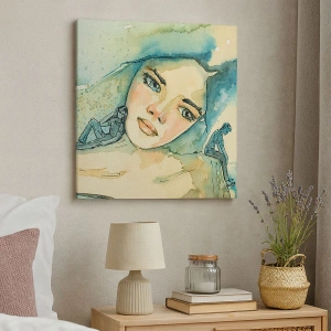 Le motif du visage de femme, représenté avec art, souligne la beauté et l'expressivité des émotions, tandis que les détails subtils de l'arrière-plan ajoutent harmonie et caractère unique à la composition. Ce tableau s'intègre parfaitement aux intérieurs modernes, comme un salon, une chambre ou un bureau.