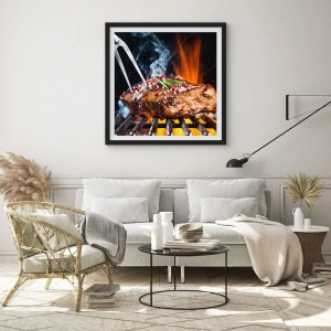 Affiche dans un cadre noir - Poster - Steak grillé sur un gril aux épices - 70x50cm - Juteux et parfumé - Décoration murale moderne pour le salon et la chambre ARTTOR